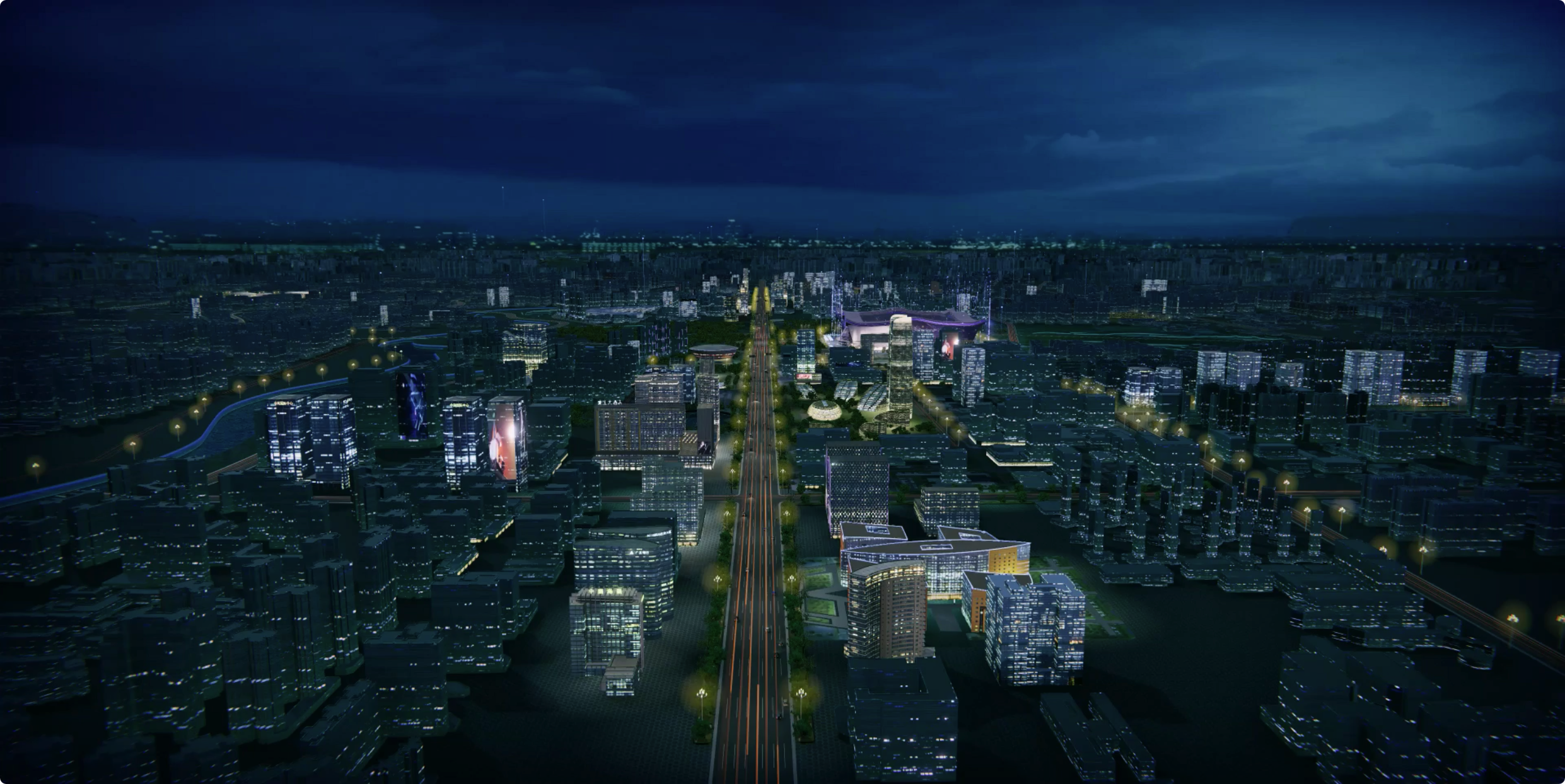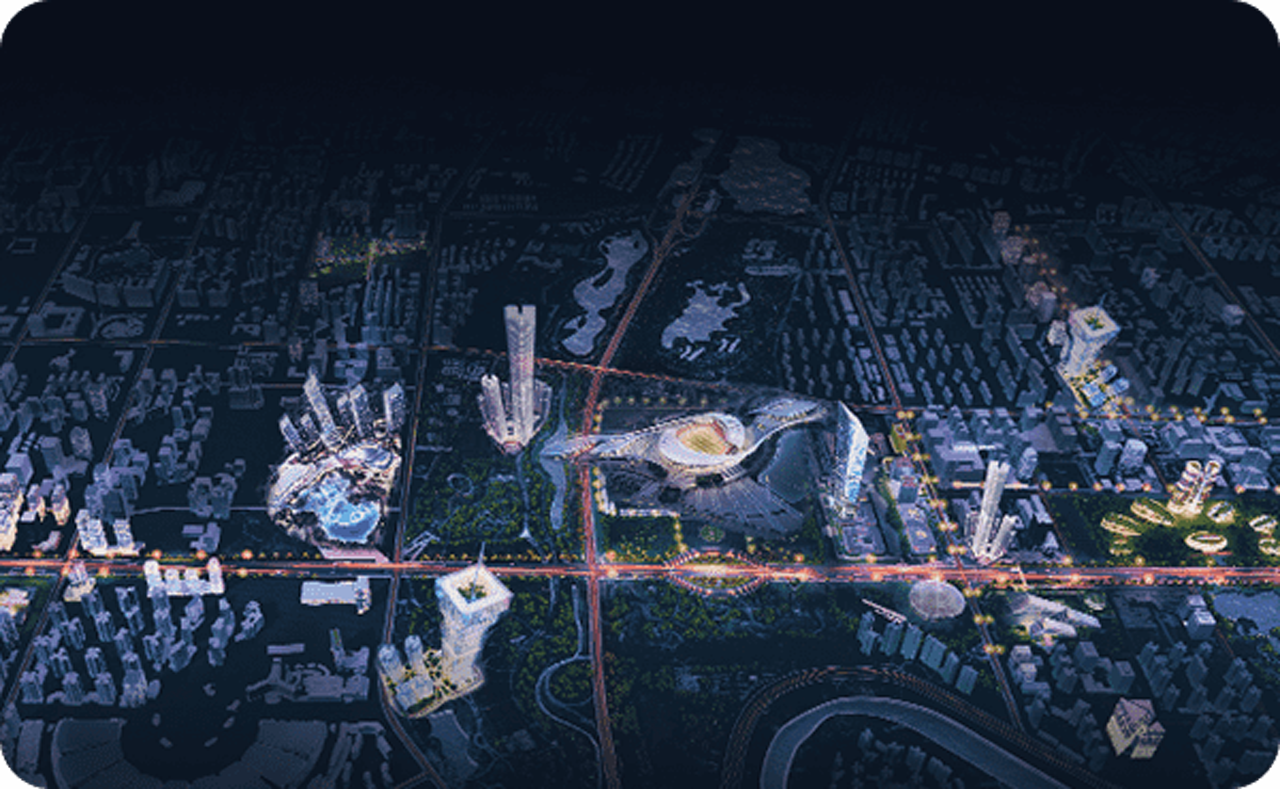采用融合機器視覺自動建模技術,結合GIS數據,自動完成100平方公里L2級別(指包含實體三維框架和表面)的模型,快速構建城市輪廓,生成包括水系、道路、植被、建筑等元素的數字孿生場景。